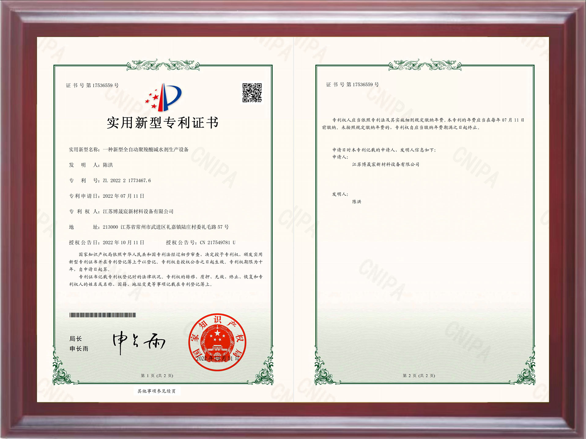 江蘇博晟宸新材料設(shè)備有限公司(以下簡稱博晟宸)專注于混凝土外加劑生產(chǎn)設(shè)備的研發(fā)與制造!我們秉承“誠信經(jīng)營,用心服務(wù)”的企業(yè)宗旨,竭誠為您提供優(yōu)質(zhì)的產(chǎn)品和滿意的服務(wù)!我們注重細節(jié),不斷創(chuàng)新,實現(xiàn)合成復(fù)配設(shè)備智能化,一機多用。竭盡全力為客戶節(jié)省成本,免費提供建廠方案的指導(dǎo),免費提供生產(chǎn)配方,免費提供技術(shù)支持!